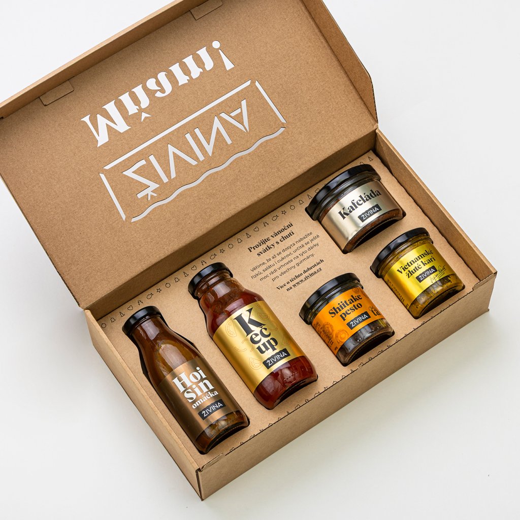 Dárek ochutnej Živinu je jako malý výlet po chuťové mapě světa – bez letenky a s plnou lednicí. Od čínské Hoisin omáčky, přes Vietnamské kari, rajčatový Kečup z Moravy, až po Shiitake pesto a sladký mandlový krém s kávou. Ideální jako objevovací balíček pro ty, kteří Živinu ještě neznají, nebo jako dárková sada pro někoho, kdo rád zkouší nové chutě. Každý produkt má v kuchyni svoje místo – a každý chutná jinak. O nudě tu nemůže být řeč.