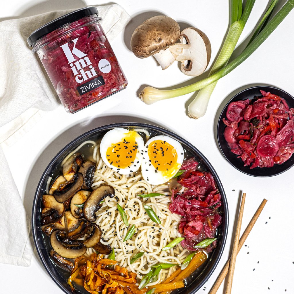 Svěží, křupavý a tak akorát štiplavý salát vycházející z korejské receptury, co pomalu kvasí do krásy. Nálož vitamínů, minerálů a probiotik s nízkým obsahem kalorií. V našem podání je navíc 100 % vegan. Na Živině ho najdete ve variantě Klasik, Fenykl, Pálivé pro milovníky ostrosti a Kimchi Nepálivé, které jedí i naše děti.
