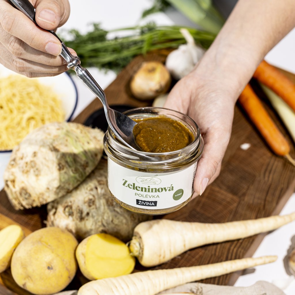 Už žiadne hodiny strávené nad hrncom – s našou koncentrovanou zeleninovou polievkou máte poctivý základ hotový za chvíľu. Stačí jedna lyžica na 200 ml vody a porcia polievky je na svete.